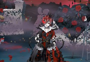 ハートの女王といえば赤、リドルも真紅の髪と赤を基調とした衣装が特徴です。